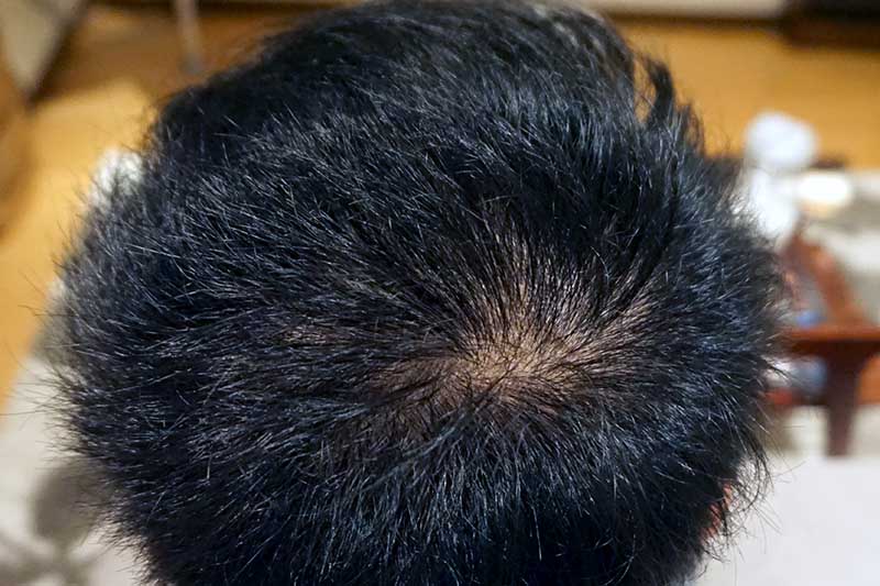 写真で見ても、ちょっと右の生え際が薄いように見えます。