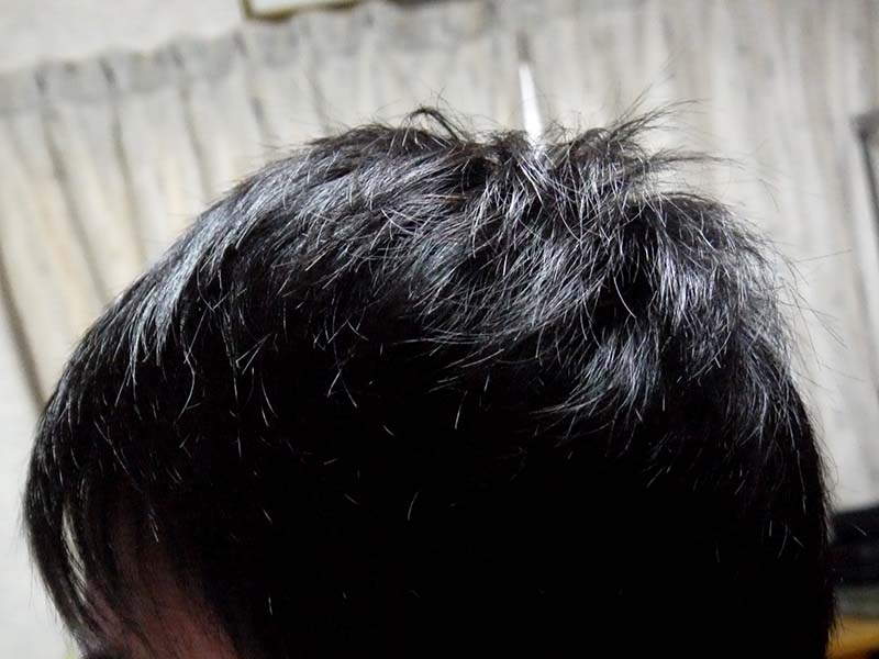 相変わらず右の生え際はハネて薄く見えますが(右の方が実際に左よりもちょっと薄いんですが)